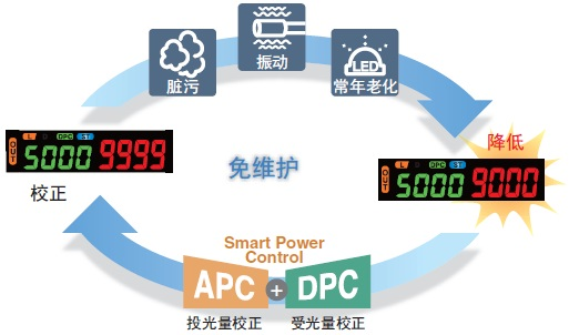 針對LED常年老化造成的投光量降低及髒污等導緻的受光量降低現象,通過智能功率控制功能,自動感知並(bìng)保持較佳檢測(cè)狀态。環境适應性強,免維護。