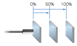 線性補償時,不需要以往那種用旋鈕 進行繁瑣的調整。隻需在檢出距離的 0%、50%、100%這3個點上進行示教 就能夠完成線性補償,因此設定工時 大幅削減。