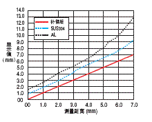 檢測物體是非磁性金屬時,與 磁性金屬相比線性變差。 特别是SUS、鋁合金等,爲瞭提 高其線性,搭載瞭材質選擇功 能。