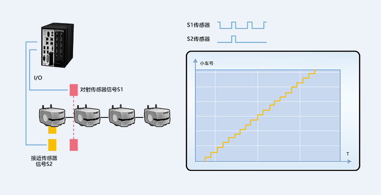 通過多個傳感器組合,採用I/O累加和信号置零的方式,經過計算推導,得到每個小車的實時位置。