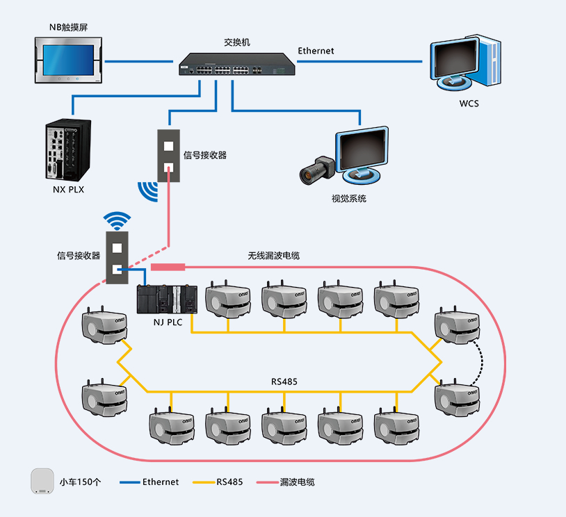 採用一主一從兩台PLC構建整個核心控制系統,PLC間通過EtherNet/IP網絡進行數據信息快速穩定地交互,不僅減少瞭(le)客戶的硬件成本,也提高瞭(le)設備的分揀效率和準確(què)率。