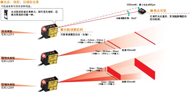 可根據(jù)工件選擇光點(diǎn)、線形、區域3種光束。
